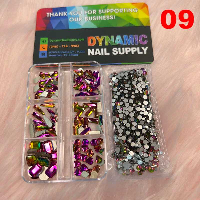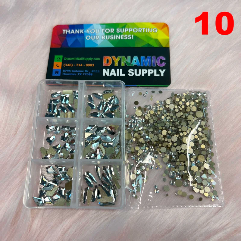 This set is perfect for when you want to elevate a basic manicure without extra effort. You get six large rhinestones that instantly draw attention, plus a mix of round ones in various sizes to complement or fill in designs.